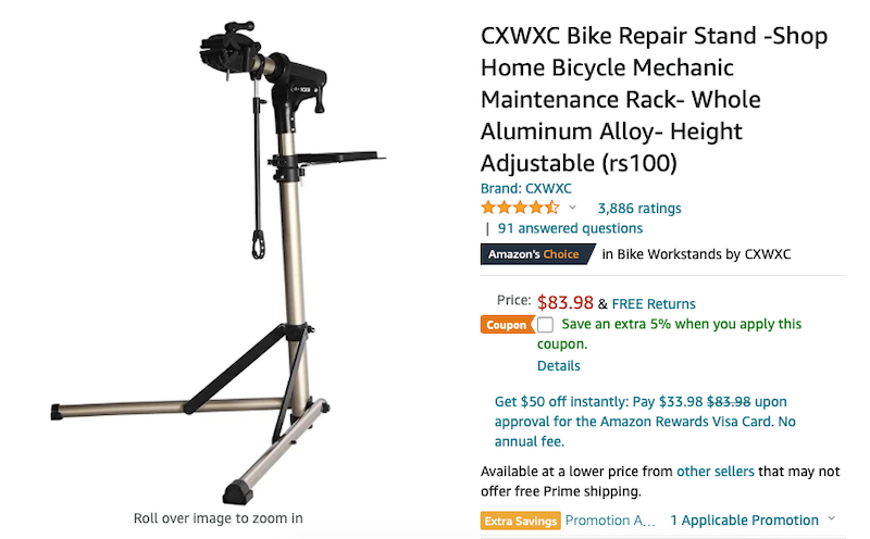 Because I'm not a professional bike mechanic it made no sense to spend a lot of $$ so I went with the "CXWXC Bike Repair Stand" on Amazon.com for $83.98. This same exact stand is sold under various other names at varying prices. You'll quickly find that this is a generic Chinese made stand.
